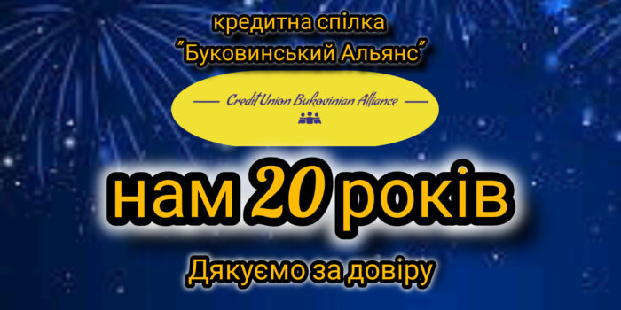 Кредитна Спілка “Буковинський Альянс” 02 липня 2024 року святкує свою двадцяту річницю успішної діяльності на фінансовому ринку України!